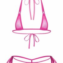 Doomiva Femme Mini Bikini Sexy Maillots De Bain 2 Pièces Bikini Set Transparent Bra Halter Bandage Micro String Ajustable Ensemble Lingerie De Nuit Vêtements De Plage Rose Vif Taille Unique