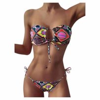 2021 Bikini Sexy Triangle Ensemble de Maillot de Bain de 2 pièces Tie-Dye Rembourré Épaulettes à Lacets Ajustables pour…