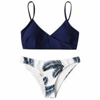 Femme Sexy Couleur Unie Impression Bikini Maillot de Bain à Bretelles Fendues Bikini Maillot de Bain Sexy Costume…