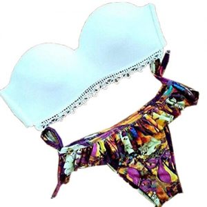DELEY Femme Accroché Cou Push Up Rembourré Maillot De Bain Ensemble Bikini Bandeau