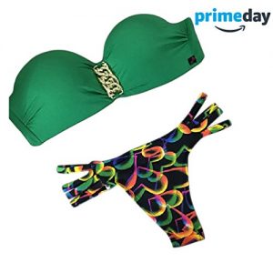 DELEY Femme Accroché Cou Push Up Rembourré Maillot De Bain Ensemble Bikini Bandeau